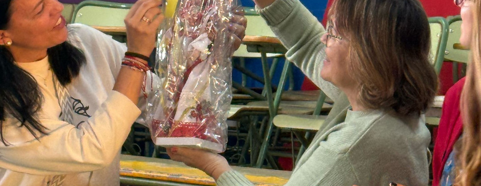 Momento de la entrega de las cartas desde Gran Canaria, en un colegio donde estudian en el sótano del centro educativo, en octubre de 2024.